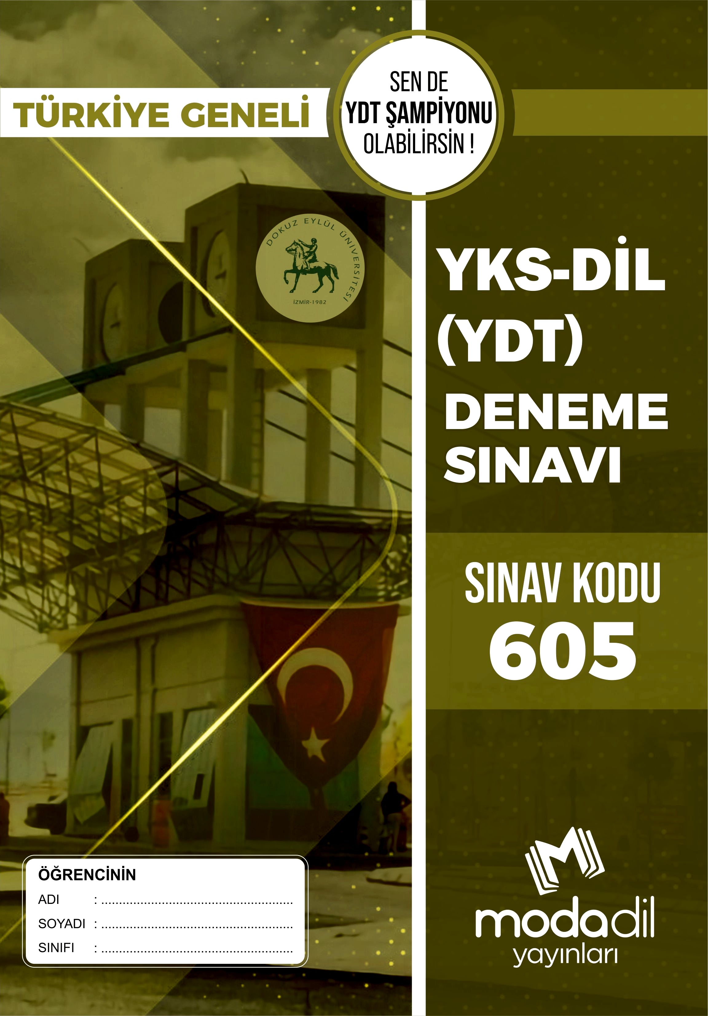 | | YKSDİL (YDT) DENEME SINAVI – 5 Uygulanacak Sınavın Kitapçık Kodu: 605